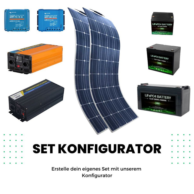 Unser innovativer Produktkonfigurator ermöglicht Ihnen, ein massgeschneidertes Solar-Set ganz nach Ihren Bedürfnissen zu erstellen. Wählen Sie aus einer Vielzahl hochwertiger Komponenten, um eine optimale Energieversorgung für Wohnmobile, Boote und andere Anwendungen zu gewährleisten.